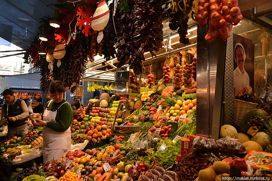 La Boqueria — известный рынок, расположенный в районе El Raval, вход на рынок со стороны улицы La Rambla. На нем вы найдете большое разнообразие свежих фруктов, овощей, орехов и семян, сладостей, а также мяса, рыбы, сыра и молочных продуктов. Даже если вы не собираетесь ничего покупать на рынке, его определенно стоит посетить самостоятельно, чтобы просто окунуться в атмосферу и ощутить на себе взрыв цветов свежих фруктов на прилавках.