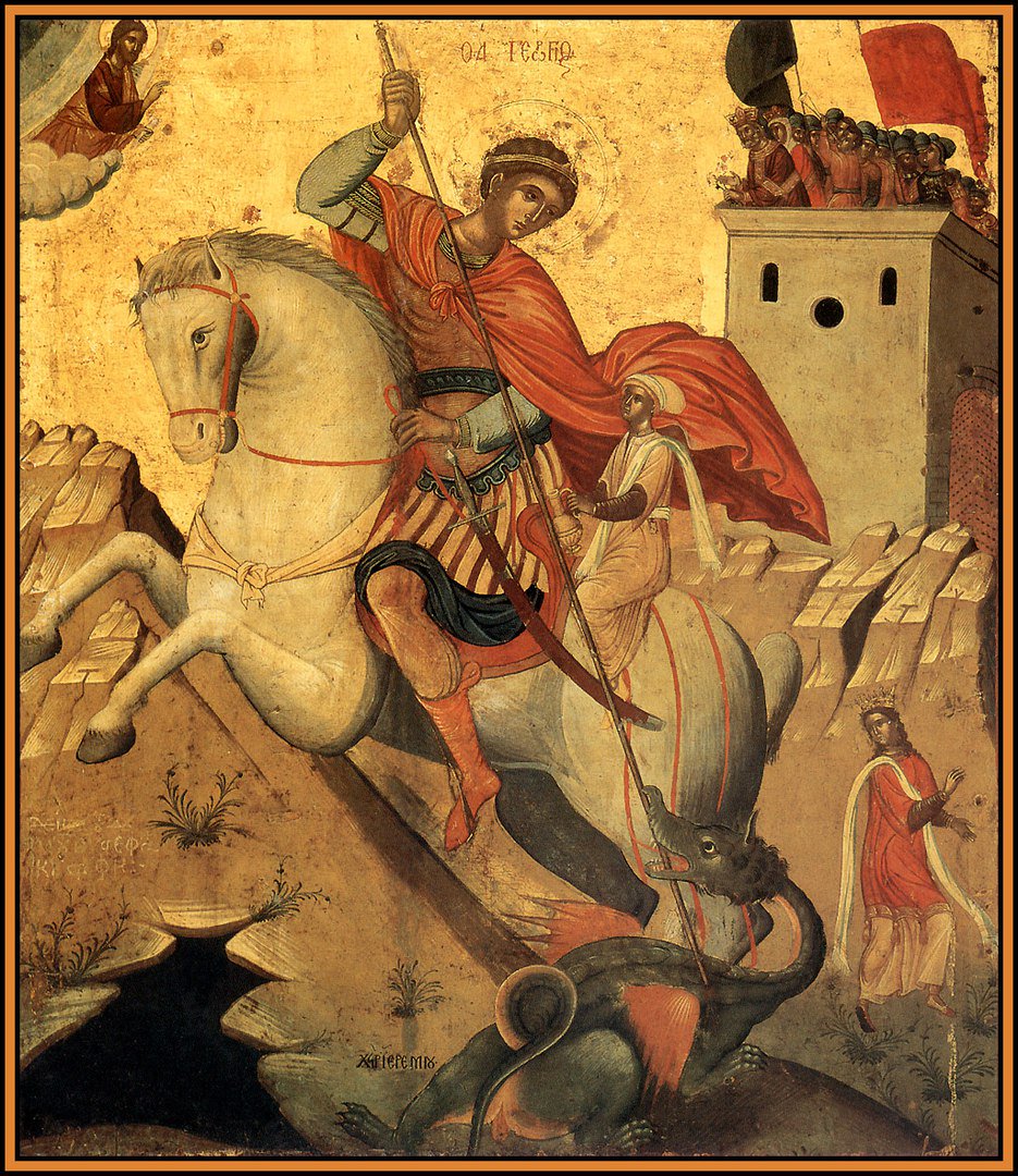 Поклонение святому Георгию стало популярно в Европе более тысячи лет тому назад. Легенда гласит, что родился он в Каппадокии (на территории современной Турции) в 3 веке. Сын солдата Римской империи, он пошел по стопам отца и, согласно традиции, вступился за христиан, за что был предан на муки.