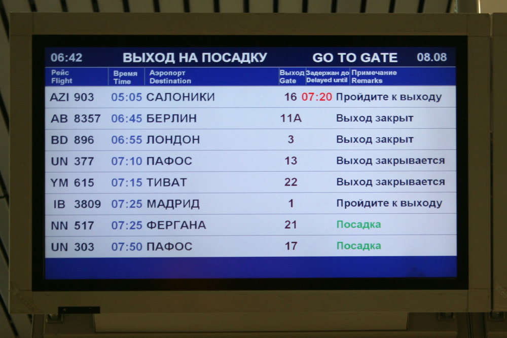 | 08:20 | UX6031 | Пальма-де-Мальйорка (Аэропорт Пальма-де-Мальйорка) | Air Europa | B738 (Boeing 737-85P) | Задержан до 08:36 |