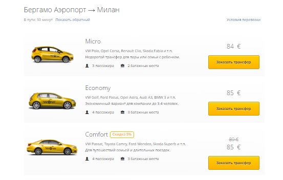 4). Трансфер из аэропорта Бергамо, заранее забронированный в интернете.