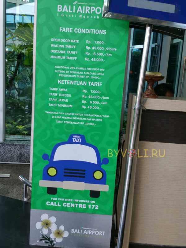 Такси работают в аэропорту Денпасара Нгурах-Рай круглосуточно. Приблизительные тарифы на транспортировку пассажиров составят: