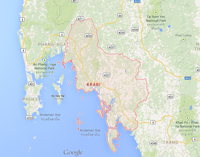 - Интерактивная карта расположения аэропорта Краби на карте Google.