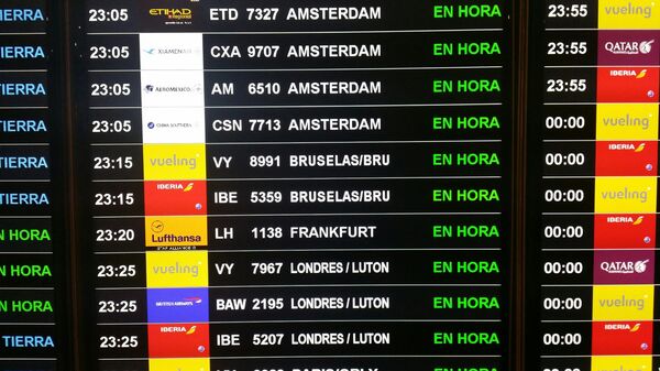 На онлайн-табло прилетов и вылетов самолетов аэропорта Малага представлены электронные данные в режиме реального времени.
