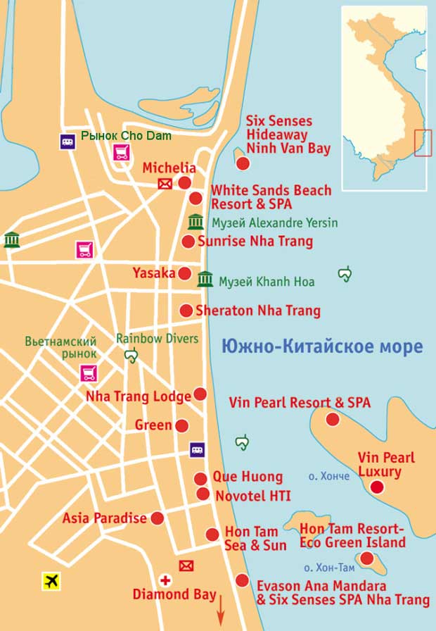 Пожалуйста, не забудьте заранее распечатать карту Нячанга, отметив на ней ваш отель. Адрес отеля на вьетнамском языке и телефон рецепции указан и в вашем отельном ваучере. Это облегчит водителю поиски отеля, а вам сэкономит время.