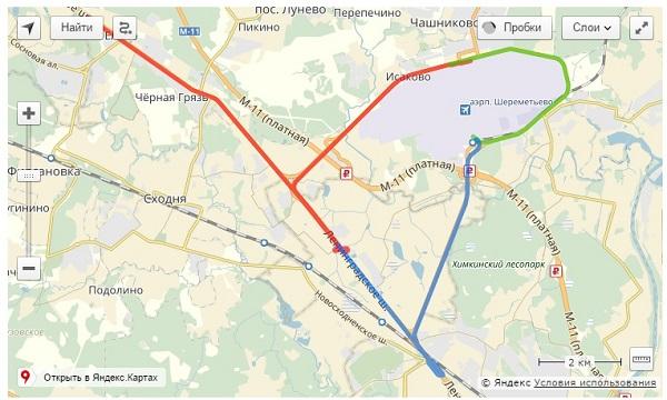 Время в пути яндекс рассчитывает на данный момент с учётом пробок. Воскресным утром он обещает, что до метро вы доберётесь за 40 минут.