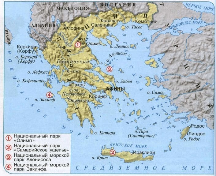 Карта Греции на русском языке: