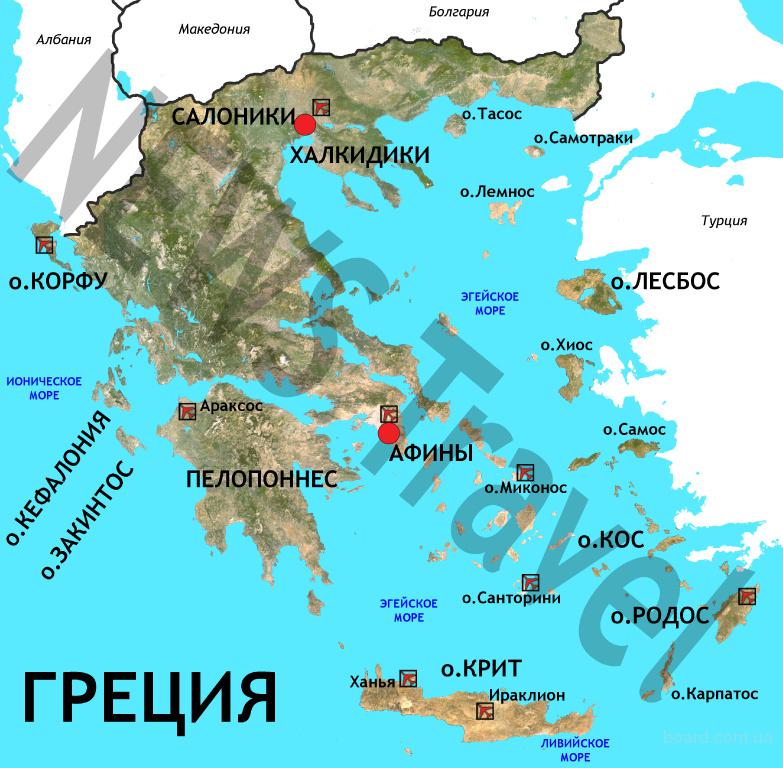 Курорты Греции на карте