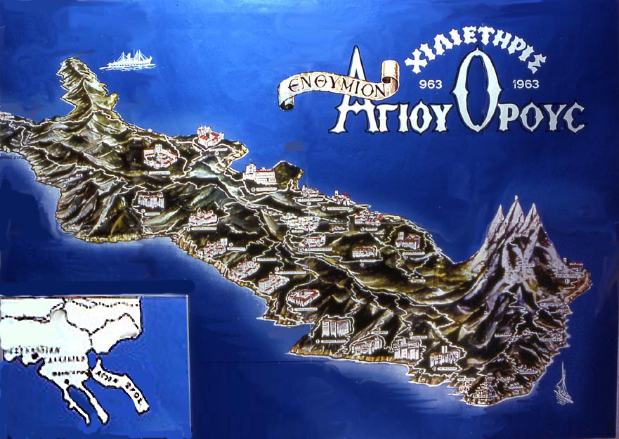 Гора Афон относится как к горе, так и к косе, на которой она расположена. Гора Афон находится на самом восточном «пальце», простирающемся от большого полуострова Халкидики в северной Греции, и поднимается на высоту чуть более 6600 футов. По-гречески он называется Агион Орос.