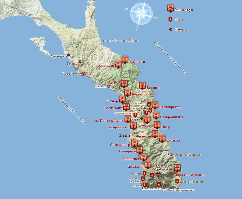 Сайт Athos Cruises дает хороший обзор всех 20 афонских монастырей.