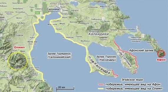 Греческий полуостров Халкидики далеко вдается в Эгейское море — колыбель античной, древнегреческой, византийской и христианской культуры. Оконечность его делиться на три узких «пальца», разделенных проливами. Самый восточный «палец», омываемый водами Эгейского моря с востока и залива Сингитикас с запада — известный всему православному миру полуостров Агион Орос (Άγιον Όρος — священная гора) или Афон гора.