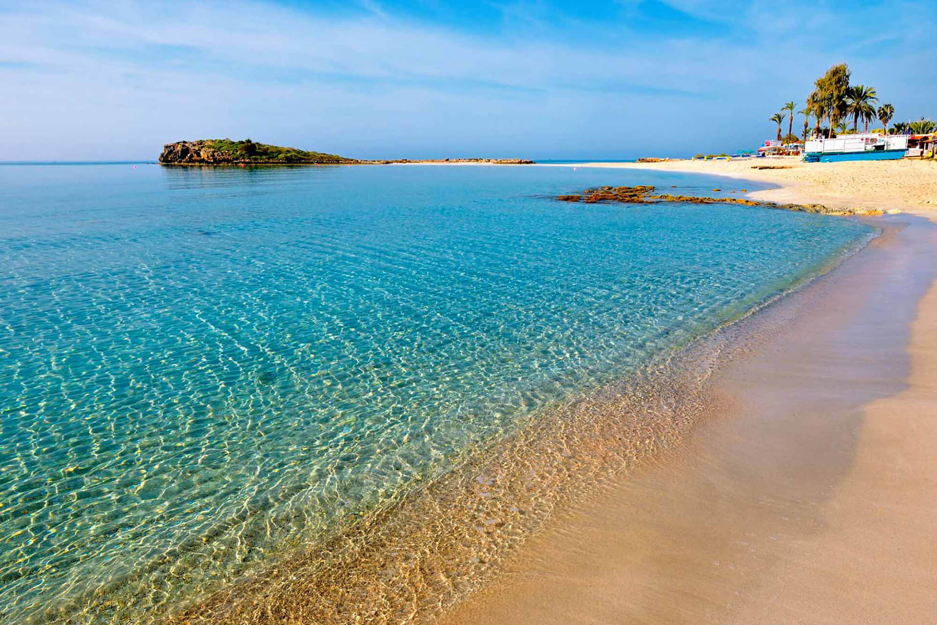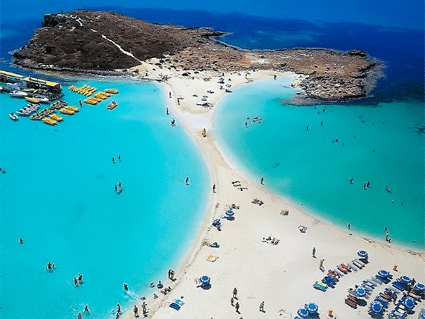 Пляж Нисси большой, песчаный, очень живописный; одна из его «фишек» — возможность попасть вброд на остров, расположенный в ста метрах от берега.