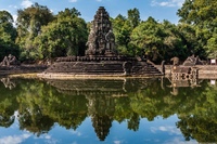 | День 2 | Начало экскурсионной программы в комплексе Анкор-Ват. Посещение южных ворот Ангкор-Тхом, храмов Байон (54 башни, украшенных более чем 200 улыбающимися ликами короля Джаявармана VII, при котором была возведена большая часть сохранившихся монументов), Бапхуон и Пименакас, Королевского Придела, Террасы Слонов и Террасы Прокажённого Короля. После обеда вас ждёт главная достопримечательность комплекса. Храм Ангкор-Ват занимает 81 гектар и сравним размерами с Запретным городом в Пекине. Знаменитые пять башен XII века, наиболее яркий пример кхмерской архитектуры, изображены на современном флаге страны и символизируют пять пиков Меру. Встреча заката на вершине холма Пномбакенг с видом на окружающие храмы, исчезающие в тенях джунглей. |