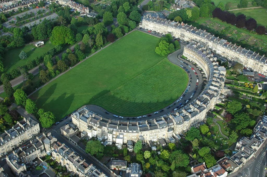 Построенный между 1767 и 1774 годами по проекту все того же Джона Вуда как жилой комплекс на северной окраине обширной зеленой зоны парка королевы Виктории (Royal Victoria Park), он имеет весьма необычную конструкцию. По идее архитектора, каждый владелец покупал лишь отдельную секцию из 30 запланированных и по своему разумению достраивал здание за фасадом. В итоге позади выполненного в едином стиле Вуда лицевой части здания расположился полукруг порой весьма разнородных по архитектуре построек, что делает комплекс совершенно уникальным явлением. К тому же контуры здания повторяет огибающая его на некотором удалении терраса, что придает комплексу некоторое сходство то ли с древнегреческим театром, то ли с римским Колизеем. К слову, подобное террасирование и полукруглые фасады встречаются в Бате нередко — аналогичные комплексы Lansdown Crescent и Somerset Place можно обнаружить километром севернее. В настоящий момент в «Королевском полумесяце» действуют отель Royal Crescent и музей самого дома, а прочие постройки отданы под офисы и многоквартирные жилые помещения.