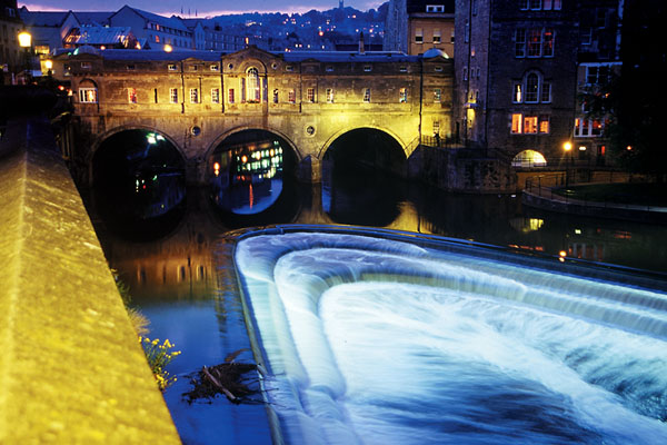 А всего в 300 метрах к северо-востоку от аббатства реку Эйвон пересекает еще одна визитная карточка города — мост Палтни (Pulteney Bridge). Этот трёхарочный комплекс был построен в 1770-1774 годах по проекту Роберта Адама под явным воздействием стиля мостов Риальто (Ponte di Rialto) в Венеции и Понте-Веккьо (Ponte Vecchio) во Флоренции, с такими же торговыми галереями по бокам — в мире всего 4 конструкции подобного рода. Окружающие его здания в георгианском стиле придают всему району очень живописный вид, а лежащие у западной оконечности моста