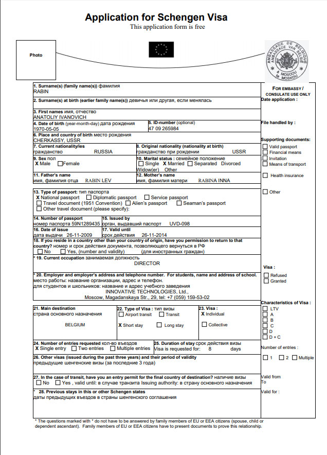 Все анкеты всех стран Шенгенского договора имеют одинаковый вид, установленный визовым кодексом Европейского союза.