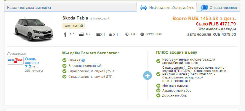 - обратите внимание на стоимость полной страховки и величину залога (Excess fee). Бывает так, что стоимость аренды невелика, зато залог просто огромный и стоимость страховки тоже высокая. Так делают в расчете на то, что по прибытию в пункт проката вы купите страховку и таким образом арендная компания возместит себе низкую стоимость аренды. Считайте суммарную стоимость аренды!