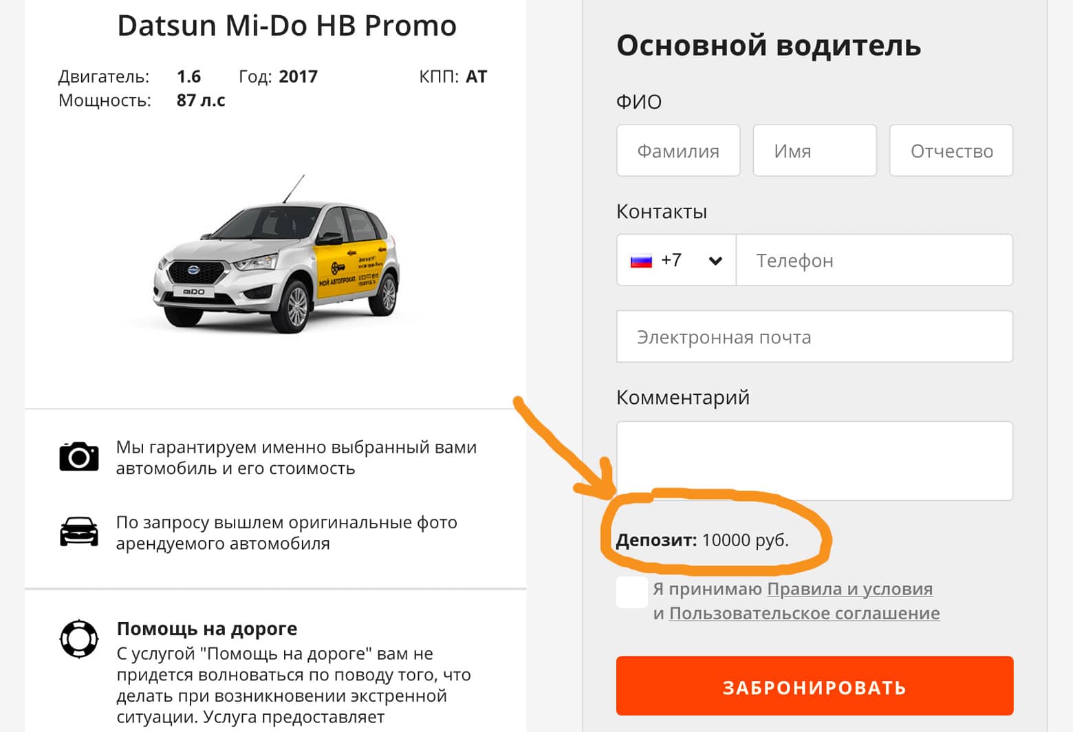 Выбрав подходящую машину, введите свои персональные данные в соответствующие поля формы. Если вы