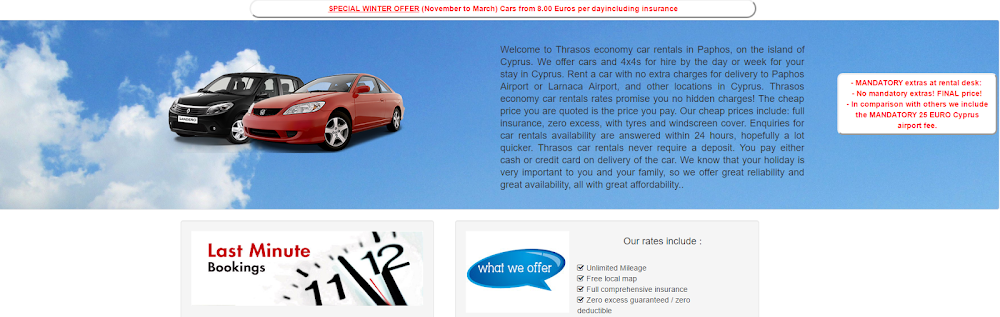 - Ставка: У нас есть автомобили напрокат в Пафосе от 8,99 $