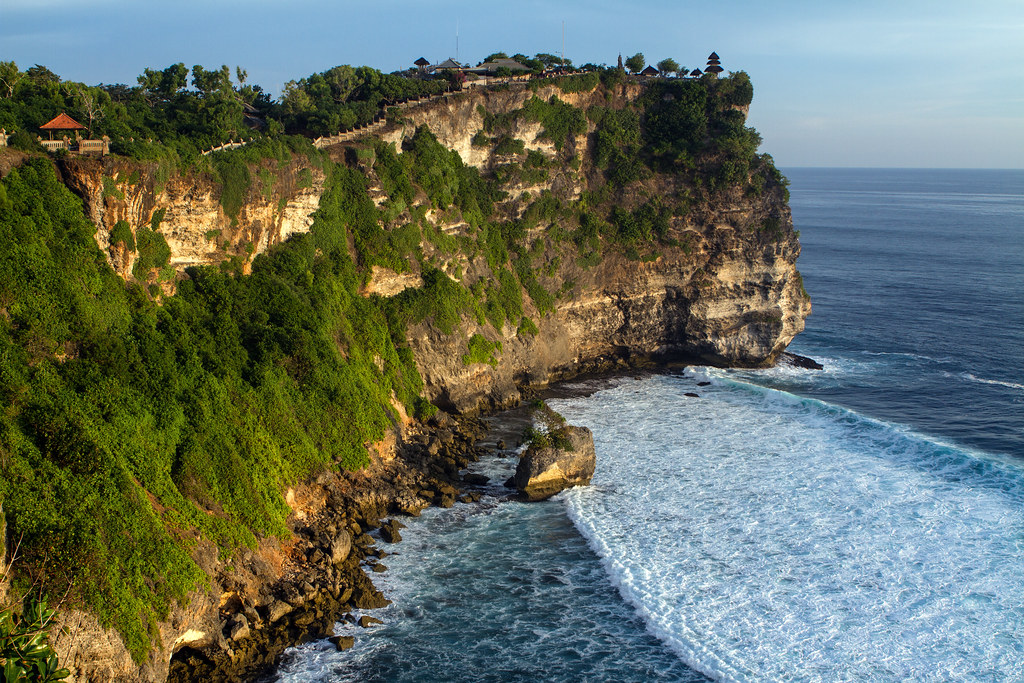 Внутреннее святилище пуры (храма) расположено на краю крутых утесов, возвышающихся над легендарными прибойными волнами Бали на юге. Большинство путешественников наслаждаются видом на этот храм с двух разных точек зрения, как с северной, так и с южной части района.