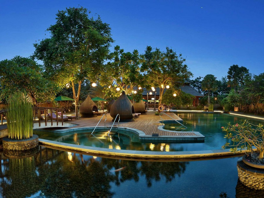 Красивый ландшафт и архитектура. Курорт Courtyard by Marriott Bali Nusa Dua Resort — одно из идеальных мест, где можно по-настоящему расслабиться и отдохнуть в балийской тропической атмосфере.