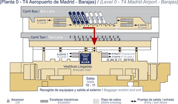 Из небесного причала в Мадрид регулярно ходят рейсовые автобусы. Остановки расположены на нулевых этажах всех терминалов, кроме Т3. Приобрести билет можно напрямую у водителя или в кассе.