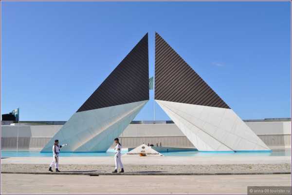 На пути встретили Монумент участникам боевых действий в Колониальных войнах Португалии. Так называют вооружённые конфликты, вызванные национально-освободительным движением в африканских колониях Португалии (Анголе, Мозамбике, Гвинее-Бисау) в 1960–1970-х годах. Это не смена караула, солдатики просто поменялись местами в своих будках.