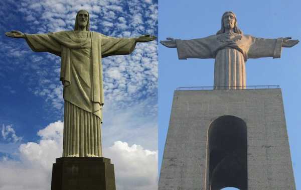 На фото: слева — Христос-Искупитель в Рио-де-Жанейро, справа — статуя Христа в Лиссабоне