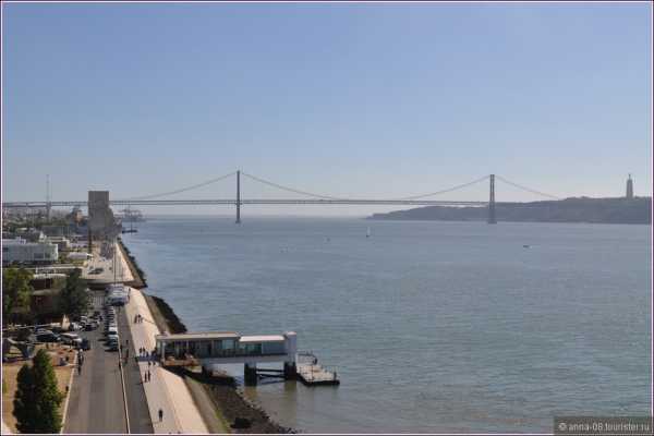 Кстати, это самый длинный подвесной мост в Европе, и его видно даже из иллюминатора самолета, когда вы пролетаете над Лиссабоном.