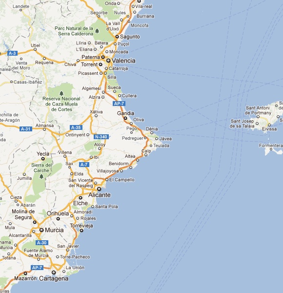 Направления вблизи Бенидорма, отсортированные по расстоянию.