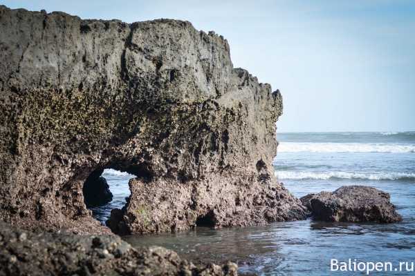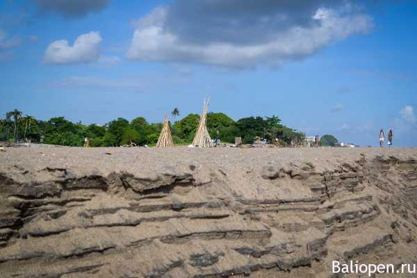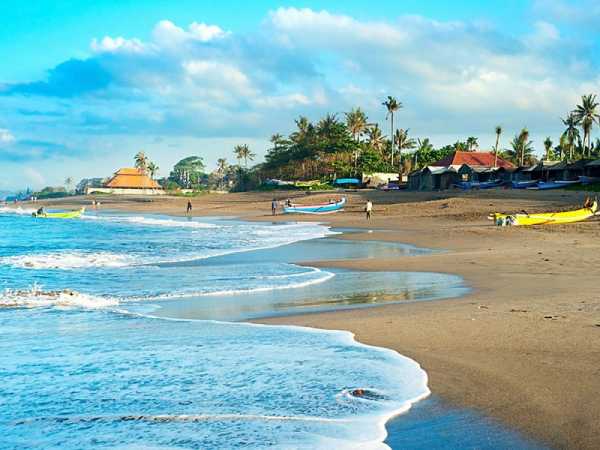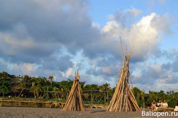 На пляже царит особая атмосфера. Живописные ландшафты формируют рисовые поля, балийские традиционные домики с крышей из черепицы, виллы, выполненные в современном стиле, храмы из черного камня.