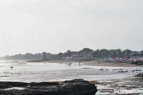 Достопримечательностей на пляже не так много. Особого внимания заслуживает небольшой храм Танах Лот. Его особенность в том, что расположен он прямо на скале среди океана. Во время отлива к скале можно добраться пешком, а вот, когда вода поднимается, то приходится им любоваться только со стороны. Храм – важный туристический объект на Бали, в связи с этим здесь всегда большое количество отдыхающих.