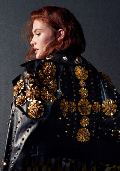 Брючный костюм-смокинг, два платья-пальто, платье с кружевной отделкой и маленькие жакеты с бантом/иллюминатором на спине демонстрируют утонченные оттенки цвета шампанского, белого и черного. Единственное красное платье с капюшоном, который свисает, открывая спину – это чувственная и текучая вещь, которая привносит в коллекцию вспышку энергии.