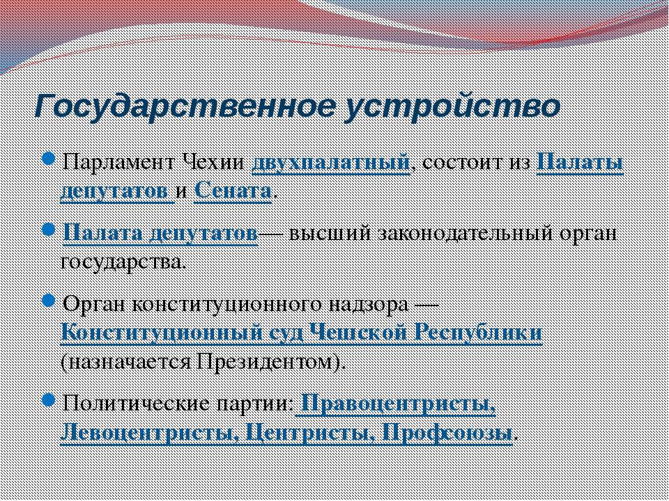 Чешская Республика (информационно-аналитическая справка)Чешская Республика (Чехия, ЧР) – государство в Центральной Европе, граничит с Германией, Словакией, Австрией и Польшей.