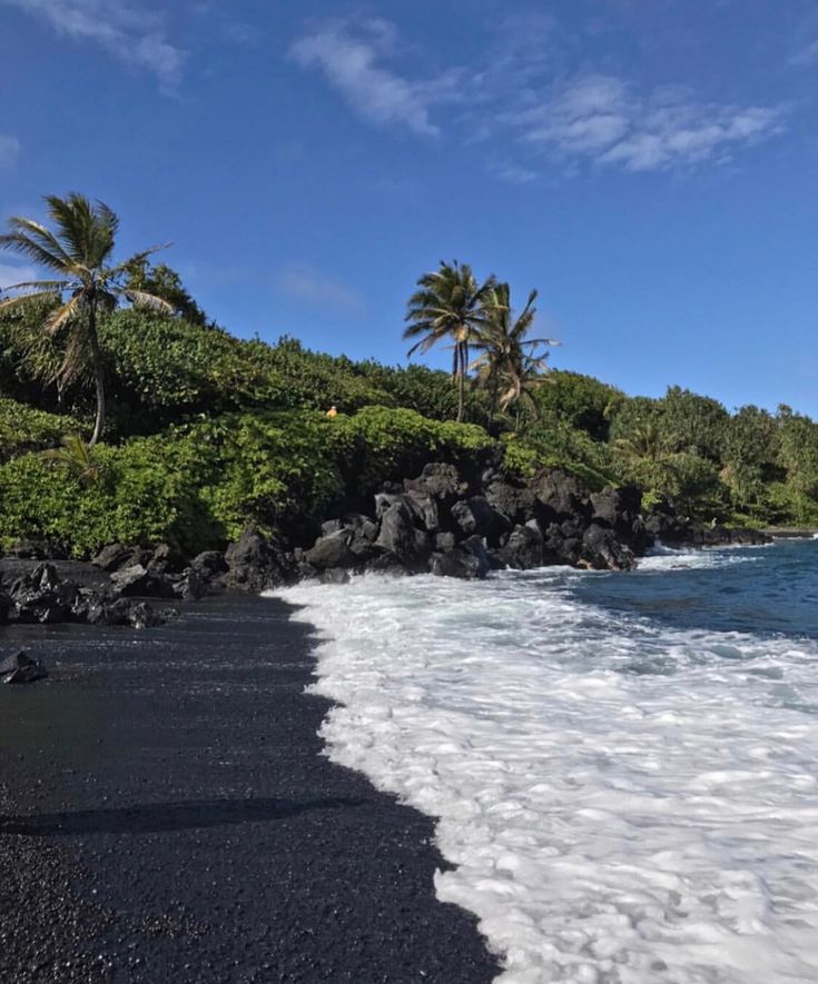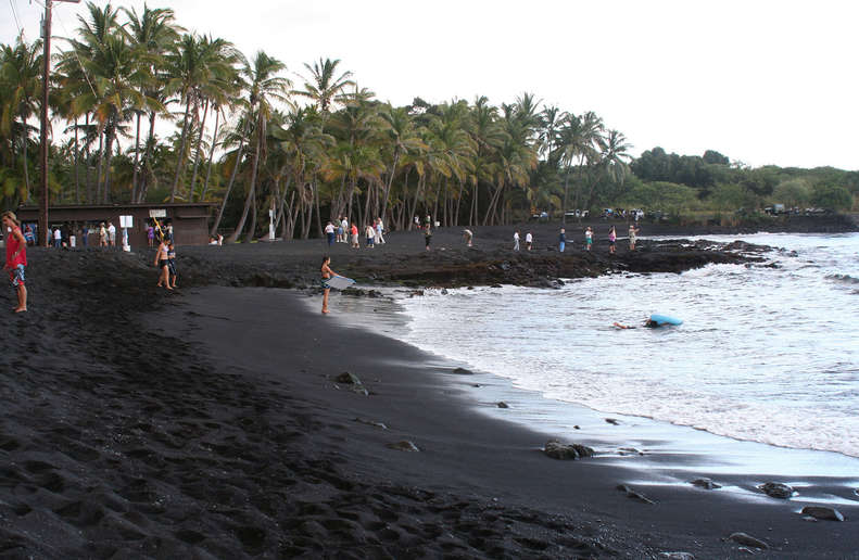 На Гавайях есть несколько пляжей с черным песком, из них семь знаменитых пляжей с черным песком расположены на острове Гавайи и один на Мауи.