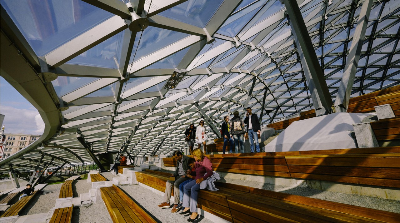Но «Зарядье» — не просто парк, это новый тип общественного пространства, созданный международной командой архитекторов, инженеров, ландшафтных дизайнеров и других экспертов. «Здесь природа и технологии, просвещение и развлечения, история и современность соединяются и дополняют друг друга» — так об этом парке сказано на официальном сайте.