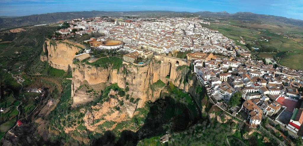 Ронда — один из древнейших городов Европы. Он расположен на юге страны в 100 км на северо-восток от Малаги в Андалусии. Дорога в Ронду проходит по самому краю обрыва, а сам город построен в горах на двух массивных скальных плато, разделенные ущельем Эль-Тахо глубиной 100 метров. На дне ущелья протекает река Гуадалевин. Соединяет две части города мост Пуэнте-Нуэво (Новый мост), и вид на долину, открывающийся с него, один из самых красивых в стране и даже во всей Европе.