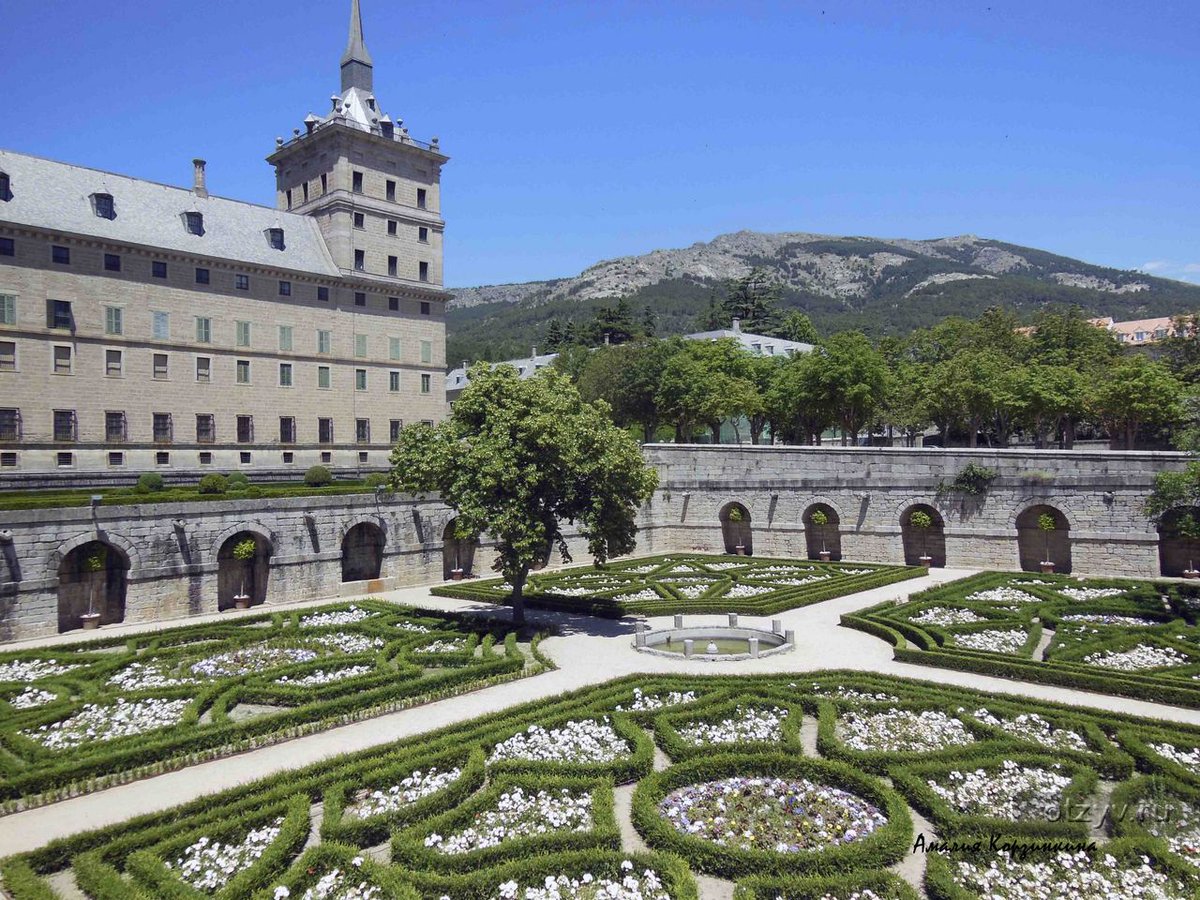 Не менее интересной достопримечательностью Эскориала в Испании являются и дворцовые сады, расположенные в южной и восточной части монастыря. Они выполнены в форме необычных фигур и засажены сотнями экзотических цветов и растений. В парке есть огромный пруд, по которому то и дело проплывает стая белых лебедей, и несколько красивых фонтанов, прекрасно вписывающихся в окружающее пространство.