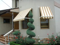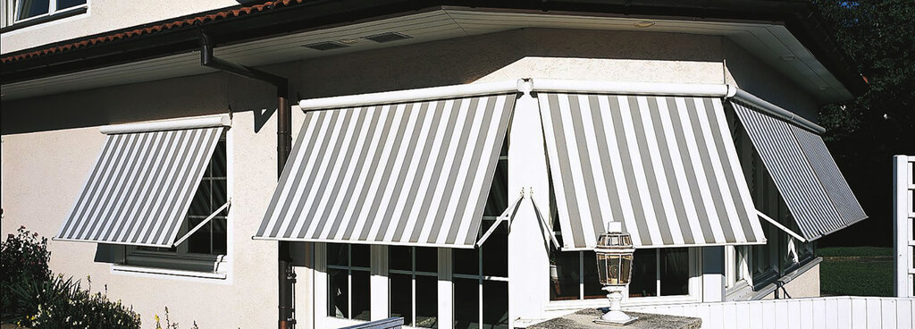 Эти складные конструкции устанавливают над оконными проемами, балконами, на открытых верандах и террасах. Одни из них заменяют жалюзи — над окнами, а другие выполняют роль крыши над открытой площадкой, затеняют и защищают от дождя.