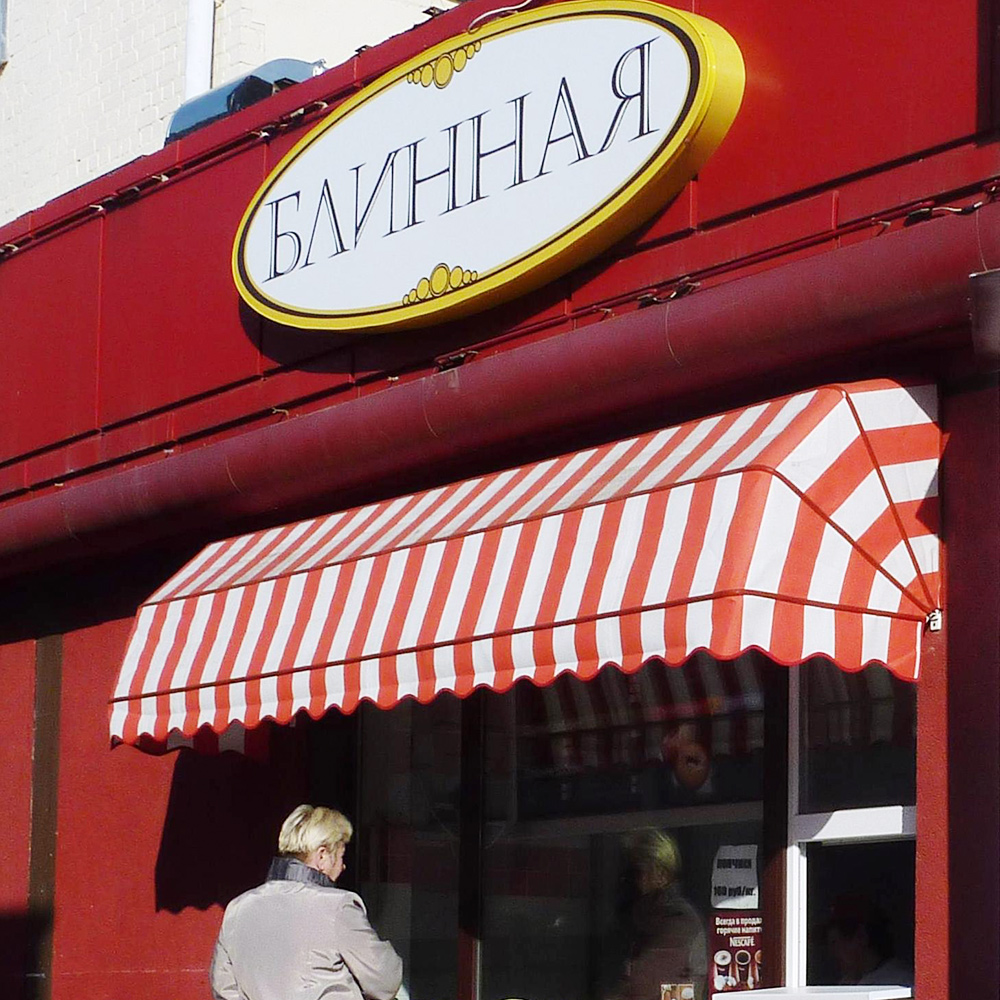 Матерчатые козырьки не только добавляют элегантности фасаду, но и дополнительно привлекают посетителей.