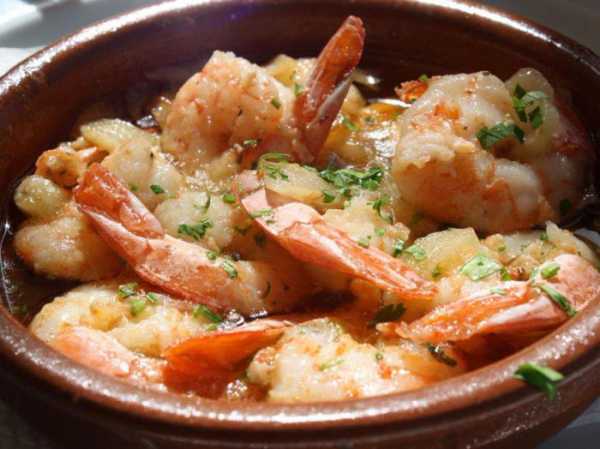 Еще одно популярное блюдо с креветками — это гамбас аль ахийо. Для него креветок обжаривают в масле с чесноком.