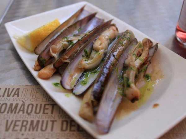 Это классическое блюдо из морепродуктов, традиционное для Галисии. Длинные продолговатые раковины содержат упругое мясо моллюсков, которое обычно подают с пряностями и маслом.