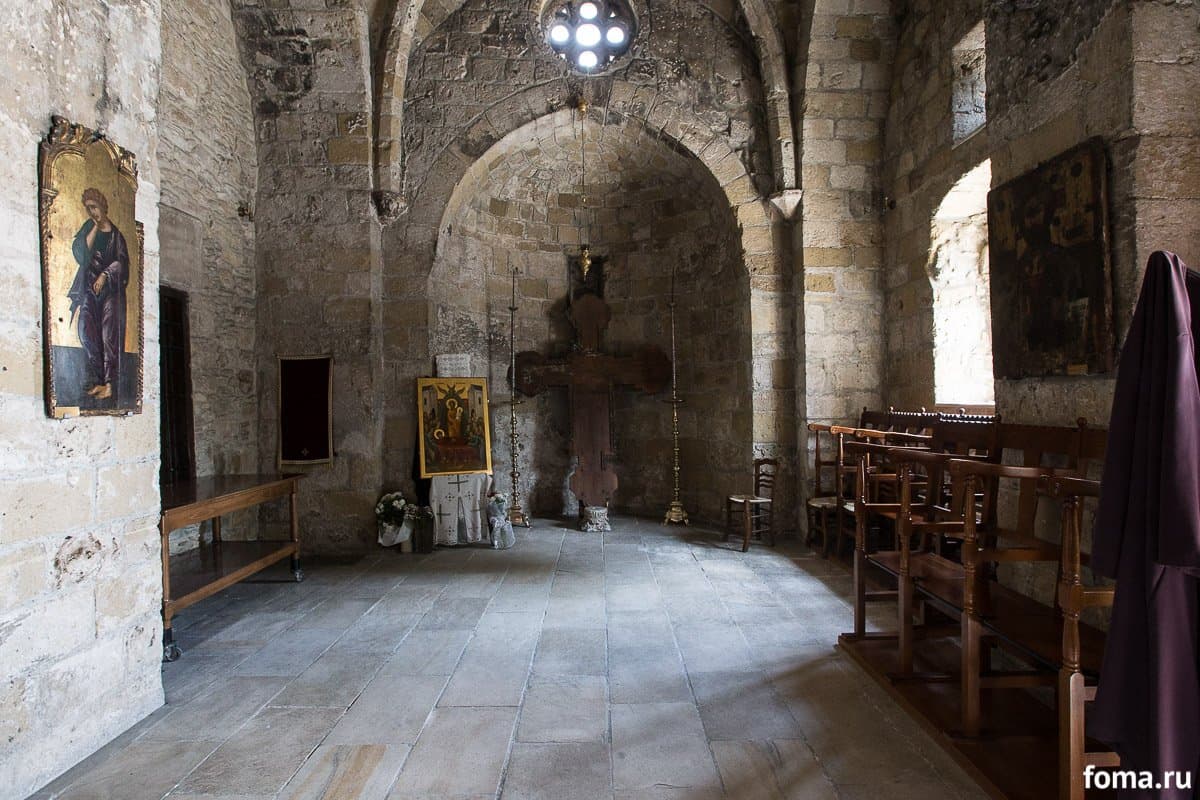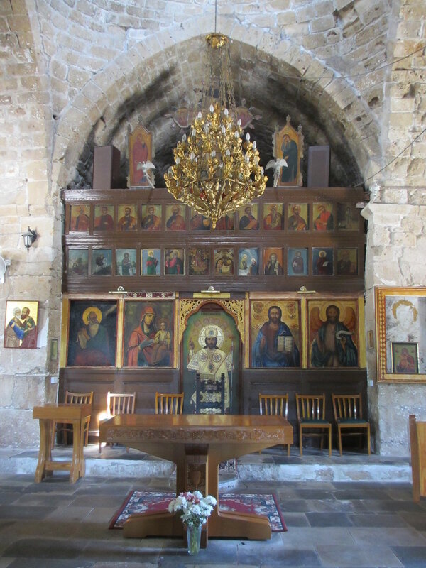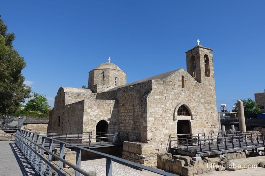Это красивая церковь — коричнево-коричневых, коричнево-коричневых и землистых оттенков, если смотреть издалека — расположена среди руин бывшей Византийской базилики, готического храма и колонн, которые когда-то использовались для наказания непокорных. Один из таких столбов, недалеко от стен Агия Кириаки Хрисополитисса, — легендарный собор Св.Столп Павла — это то самое место, где римский наместник Сергий Павел наказал апостола за проповедь христианства на Кипре.