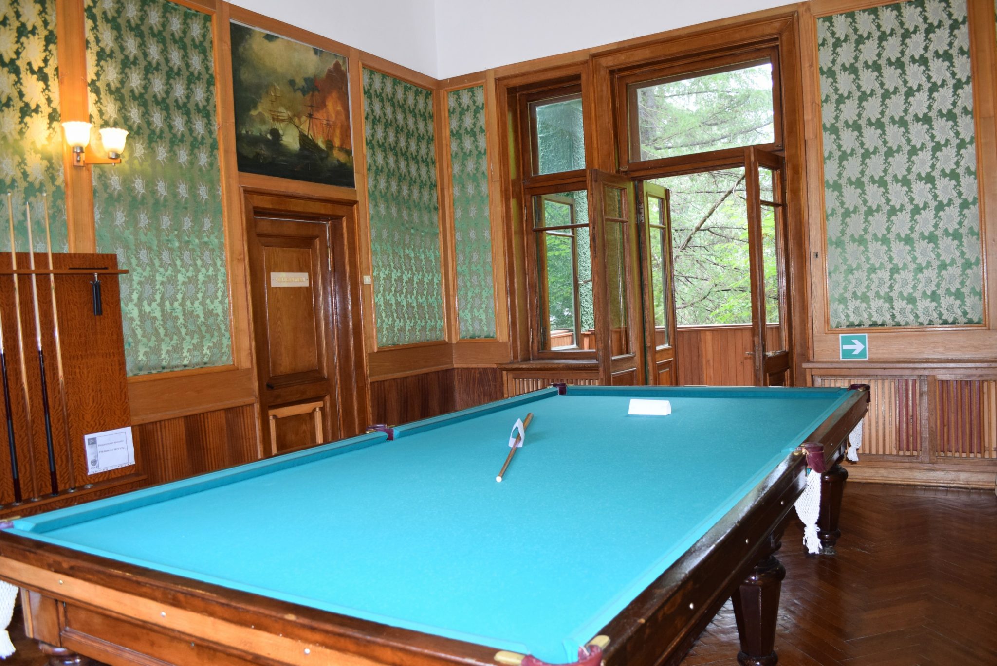 Сейчас на первом этаже для осмотра доступны кинозал и бильярдная.