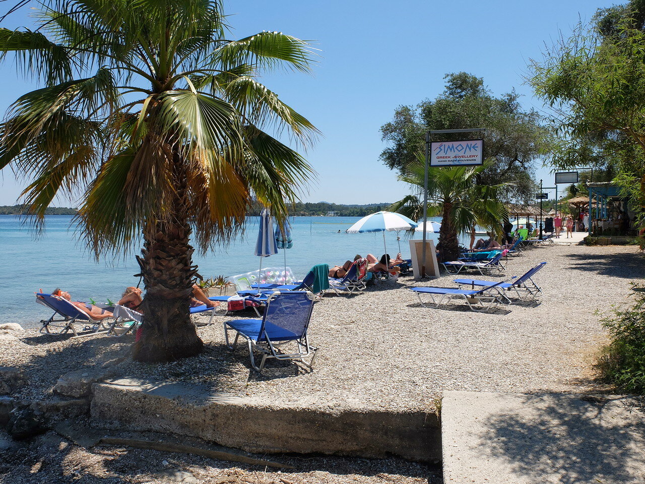 Курортный поселок Дассия, очень зеленый. И там большие отели, более дорогие. Мы рассматривали для своего отдыха отели Дассия Чандрис и Корфу Чандрис. Но дотянули и цены были очень высокие в эти отели, поэтому купили попроще. Нам было любопытно, и мы заехали на пляж Дассии. Он песчано-галечный, многолюдный.