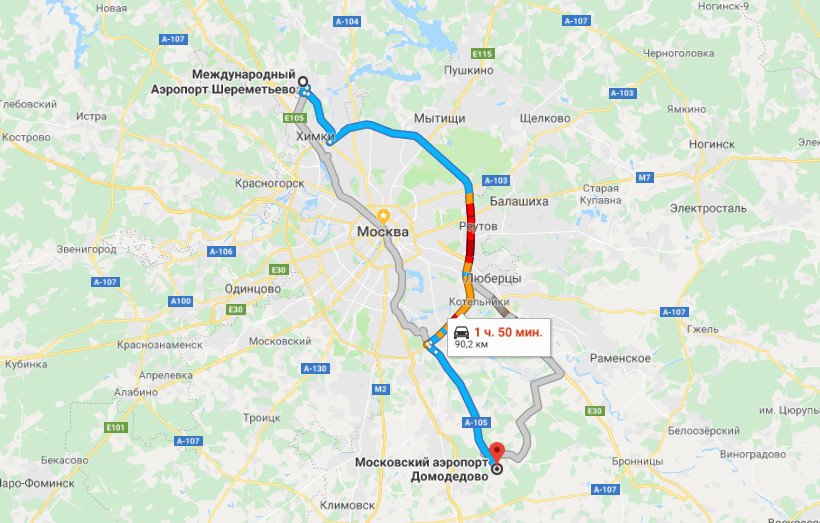 Сколько времени занимает поездка из Aэропорта Moscow Sheremetyevo (svo) в Москву-Сити на авто?