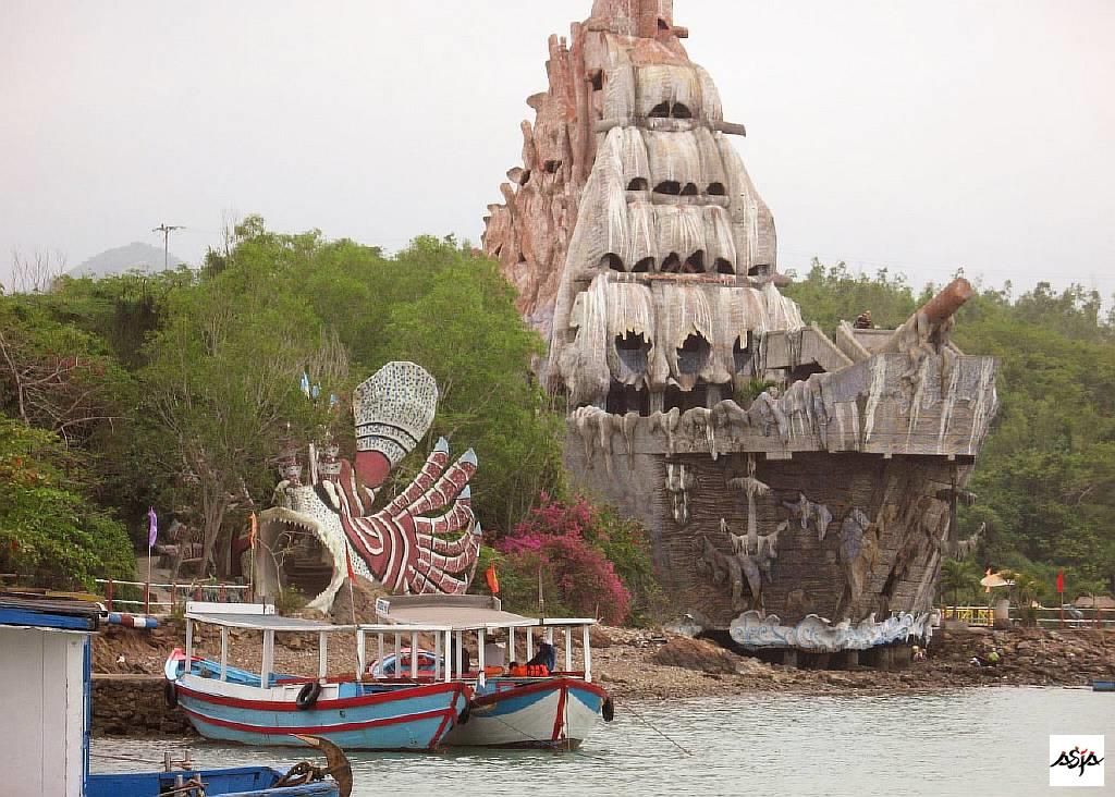 Дворец морского короля На сегодняшний день Дворец Морского короля считается самой большой сказочной постройкой в стране, открытой в 1998 г. на острове Хонмьеу рядом с озером Три Нгуен. Дворец строился таким образом, чтобы своей формой напоминать плавник огромной рыбы. |