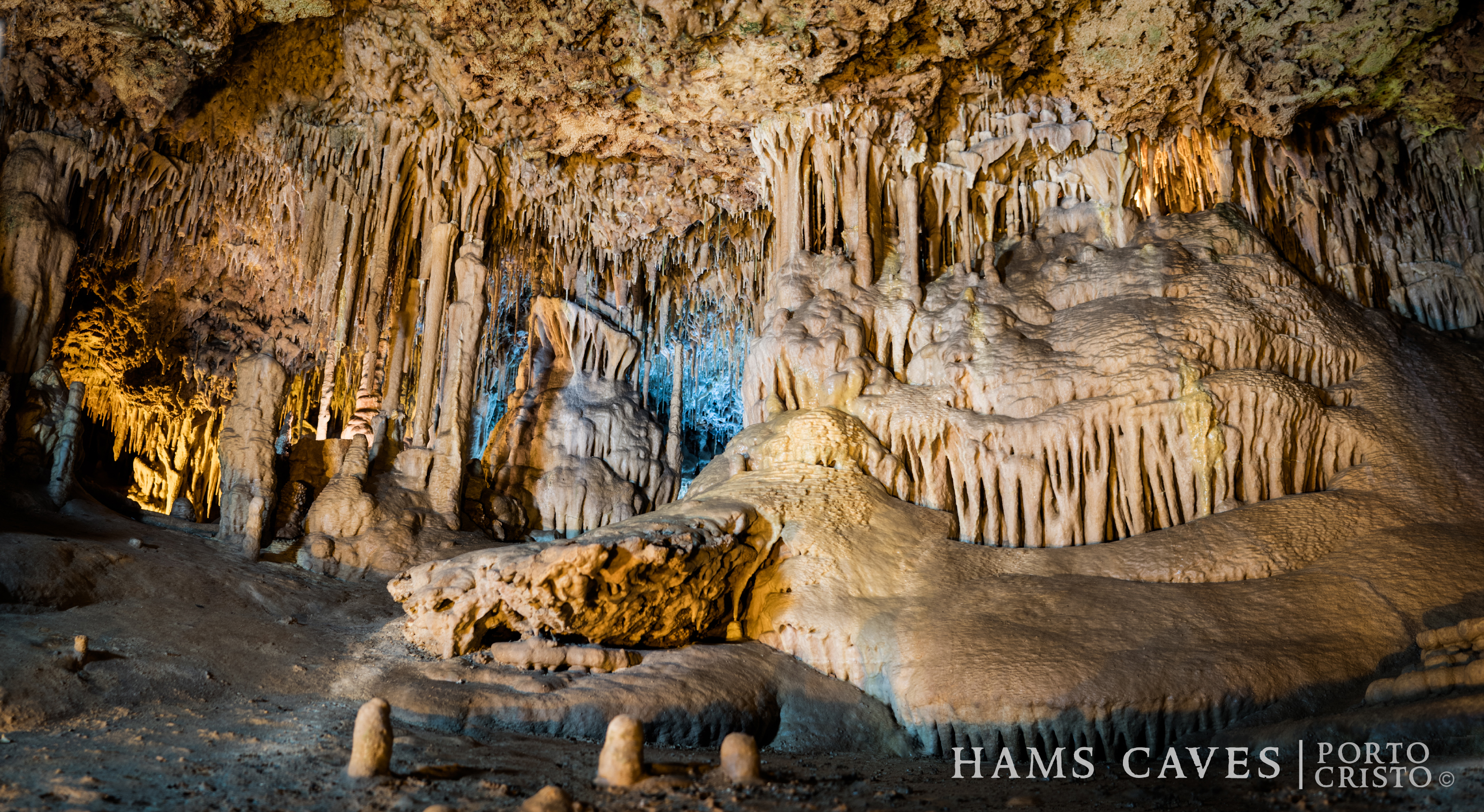 Следующими по посещаемости являются пещеры Амс (Cuevas dels Hams) , или Пещеры рыболовных крючков. Эти пещеры находятся рядом с Пещерами Дракона, и при желании вы можете совместить посещение обеих. Слово окорок в переводе с майорканского означает — «рыболовный крючок».Своим названием пещеры обязаны сталактитам удивительной формы, очень похожим на изогнутые рыболовные крючки. Это необычное творение природы можно увидеть в одном из залов пещеры с романтическим названием «Сон ангелов».