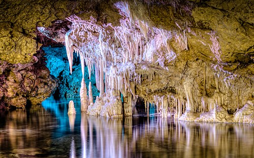 37. Купальни Дианы в Драконьих пещерах. В бирюзовой воде отражаются тысячи сталактитов на сводах.