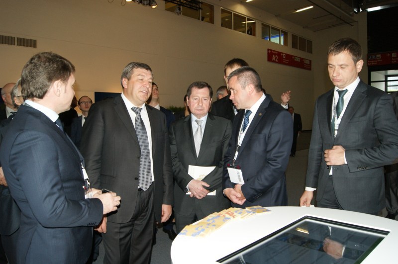 Комиссар ЕС Гюнтер Эттингер посетил Макса Бёгля в первый день выставки и получил новые впечатления по темам урбанизации и мобильности (слева направо: д-р Берт Замцов (глава TSB), г-н Стефан Бёгль (председатель Правление), г-н Гюнтер Эттингер (комиссар ЕС по бюджету и персоналу) и г-н Макс Бёгль (партнер)