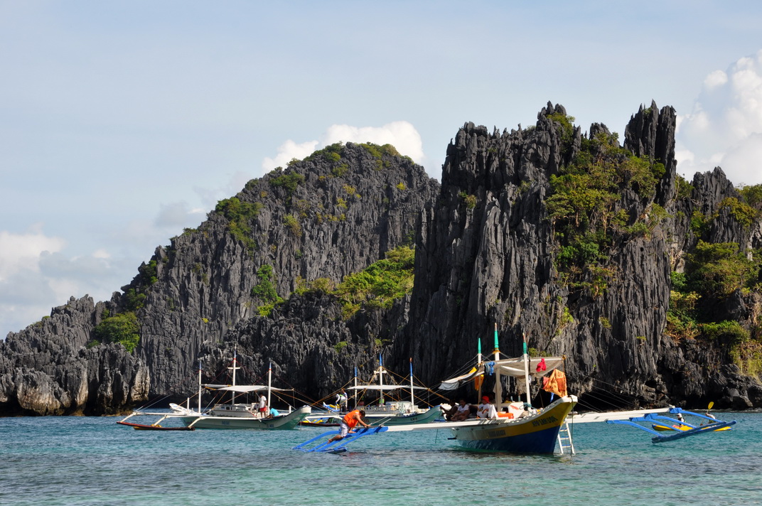Между островами и пляжами в Эль-Нидо перемещаемся на лодках За посещения заповедника Эль-Нидо берется плата 200 песо с человека – eco fee (билет действует 10 дней).Деревенька Эль-Нидо находится на северо-западе острова Палаван, в 230 км от его административного центра – города Пуэрто Принцесса.